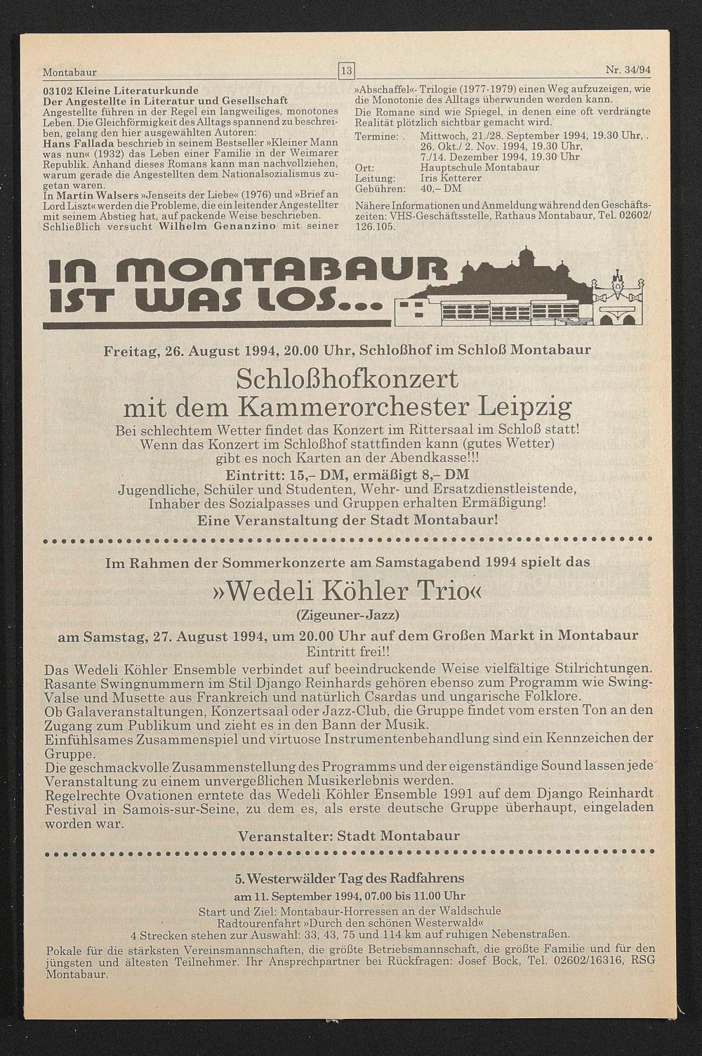 am Samstag, 27. August 1994, um 20.00 Uhr auf dem Großen Markt in Montabaur