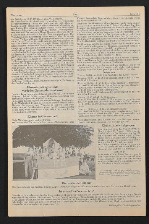 Die Dienststunde am Freitag, dem 26. August 1994, fällt wegen der Kirmesvorbereitungen aus. Ich bitte um Beachtung.