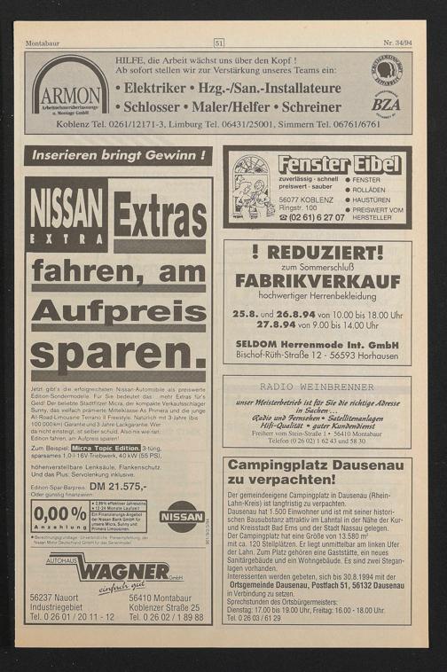 Interessenten werden gebeten, sich bis 30.8.1994 mit der Ortsgemeinde Dausenau, Postfach 51,56132 Dausenau in Verbindung zu setzen.