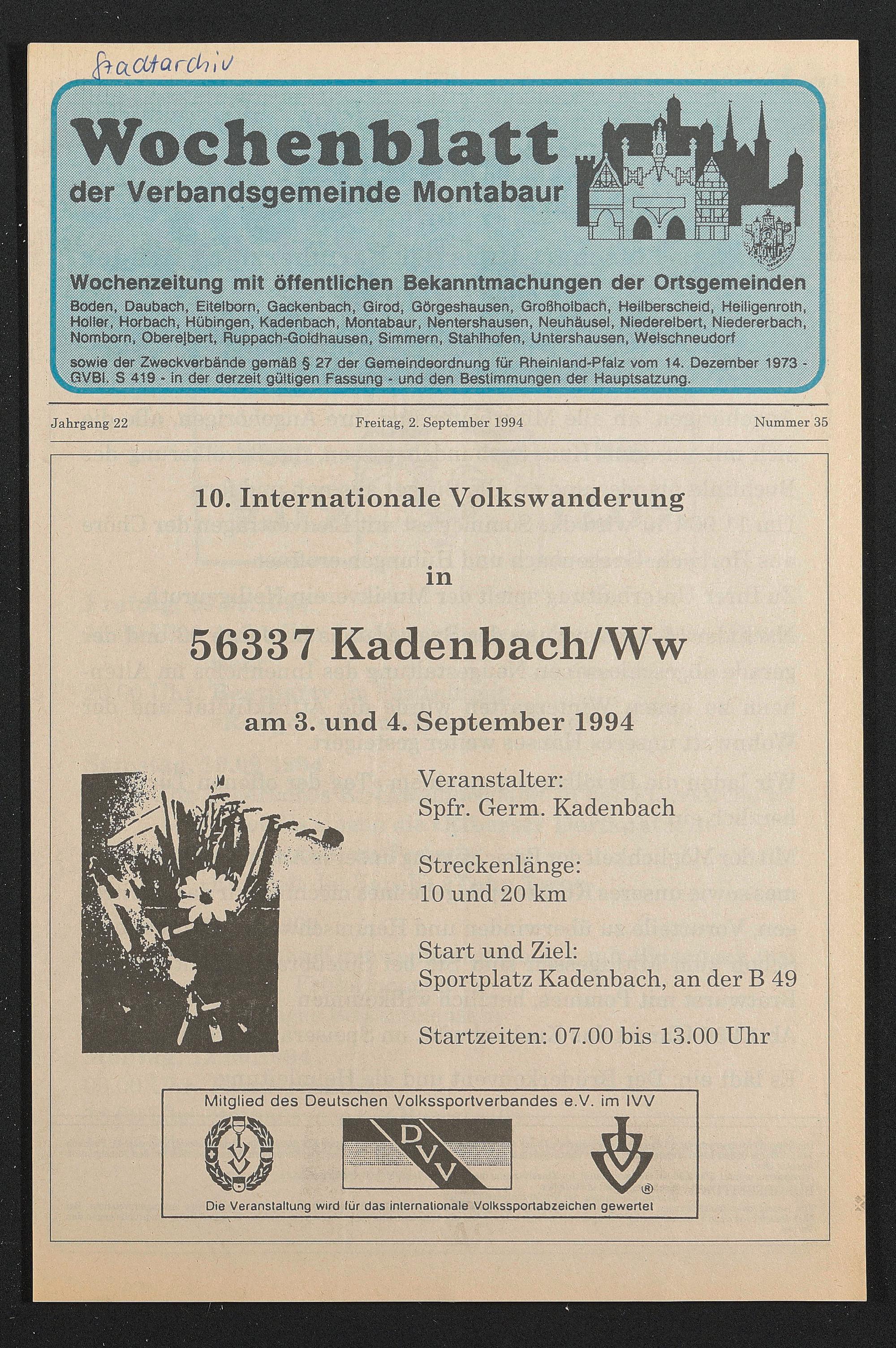 Sportplatz Kadenbach, an der B 49 Startzeiten: 07.00 bis 13.00 Uhr