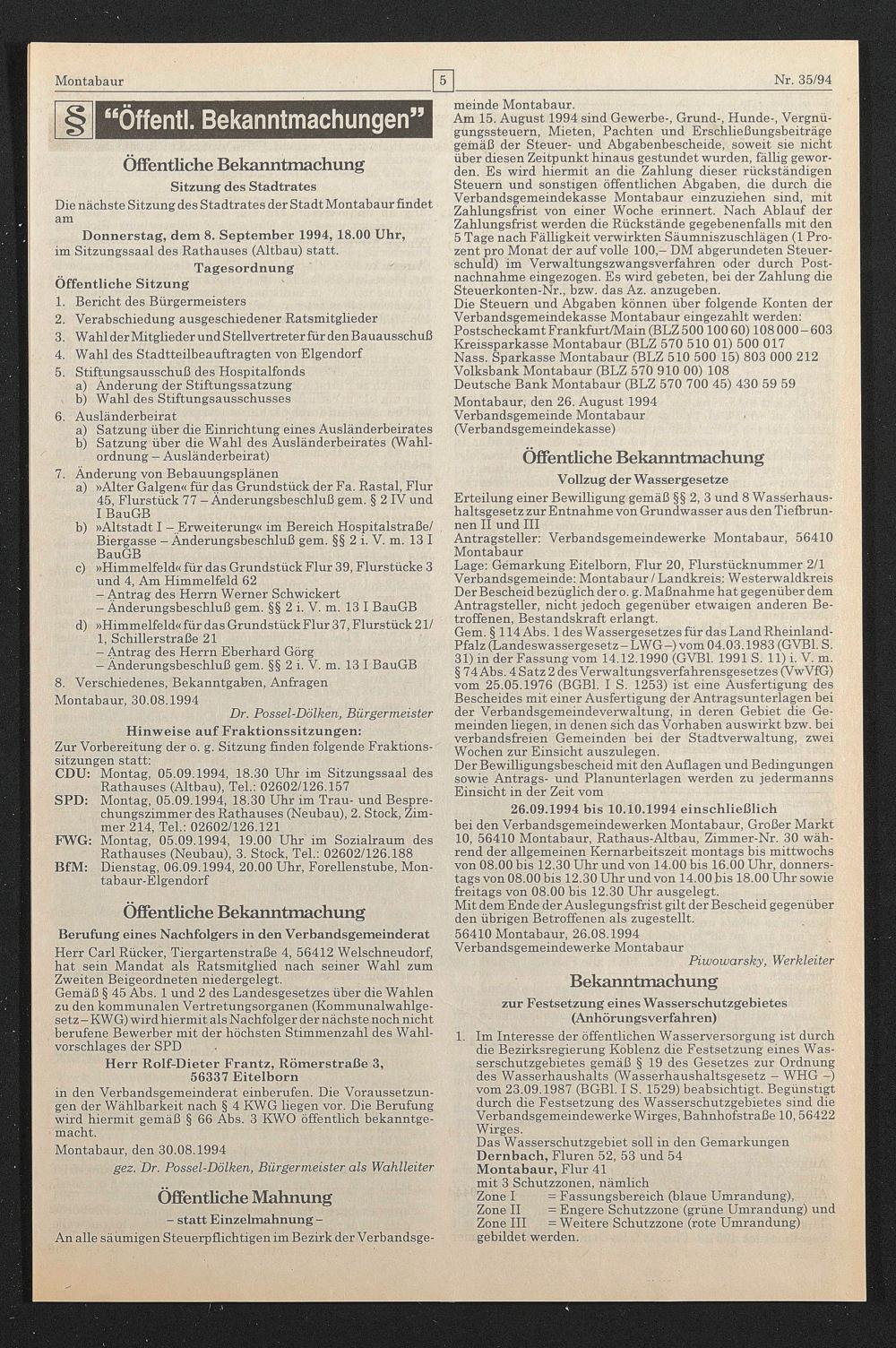 8. Verschiedenes, Bekanntgaben, Anfragen Montabaur, 30.08.1994
