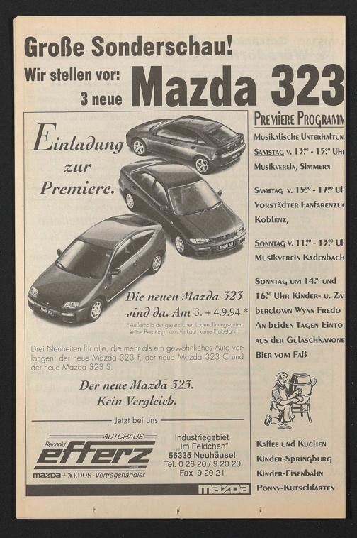 & neuen Mazda 323 <tind da. Am 3. + 4.9.94 *