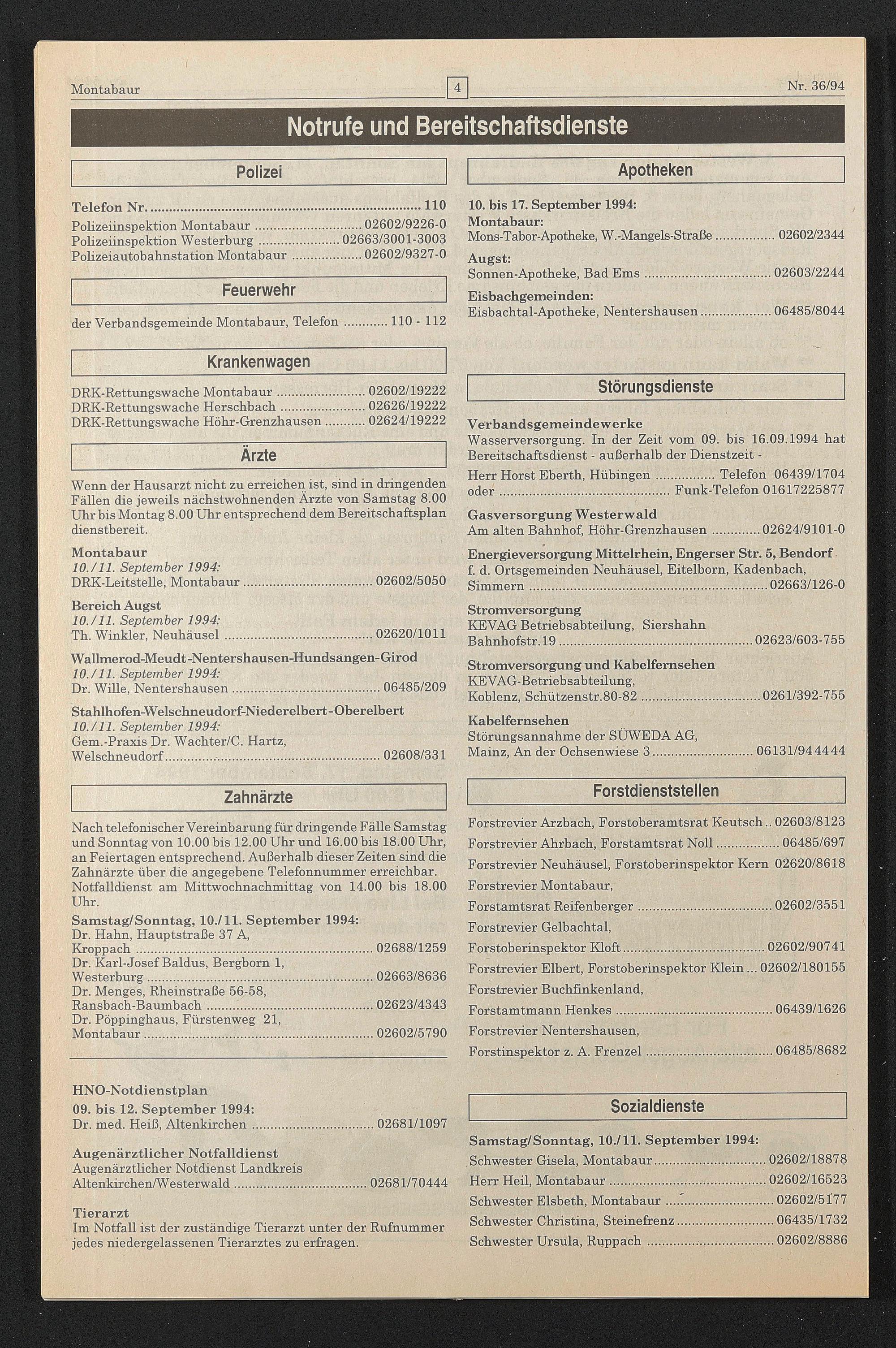 der Verbandsgemeinde Montabaur, Telefon.110 - 112
