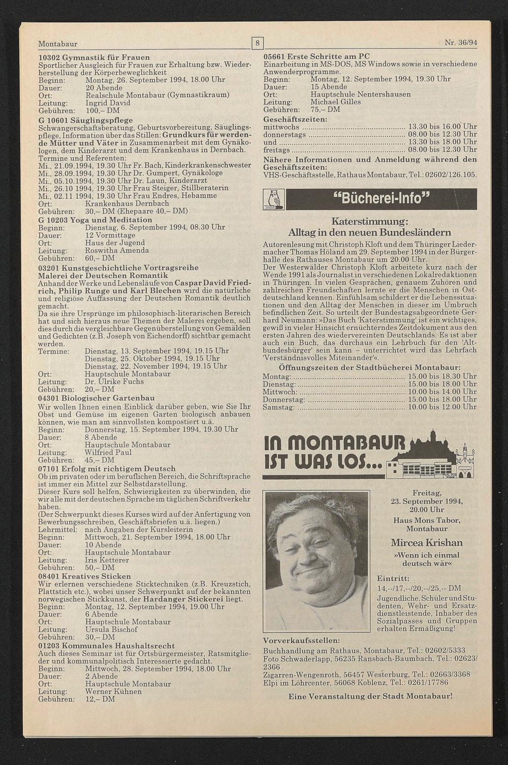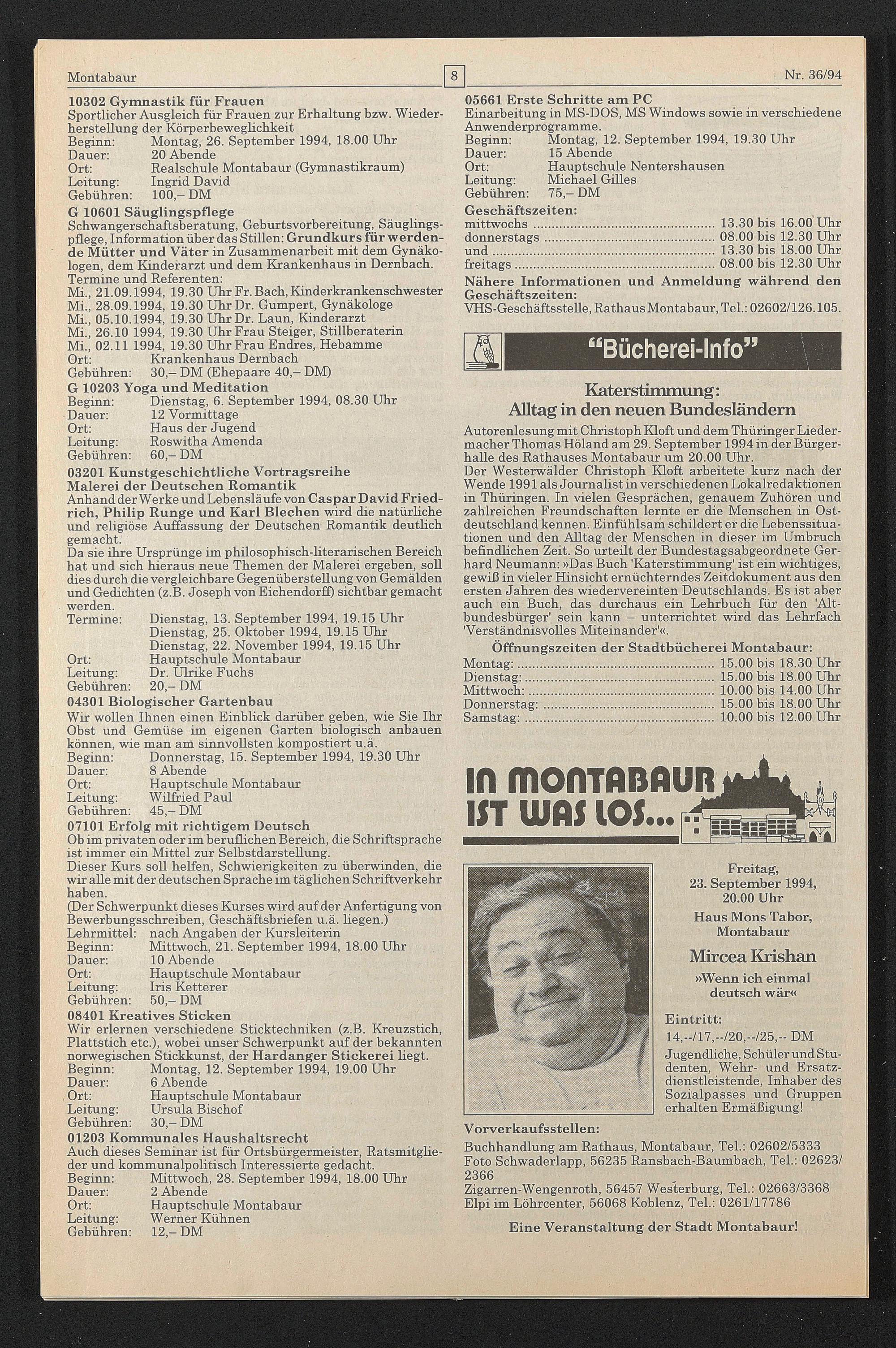VHS-Geschäftsstelle, Rathaus Montabaur, Tel.: 02602/126.105.