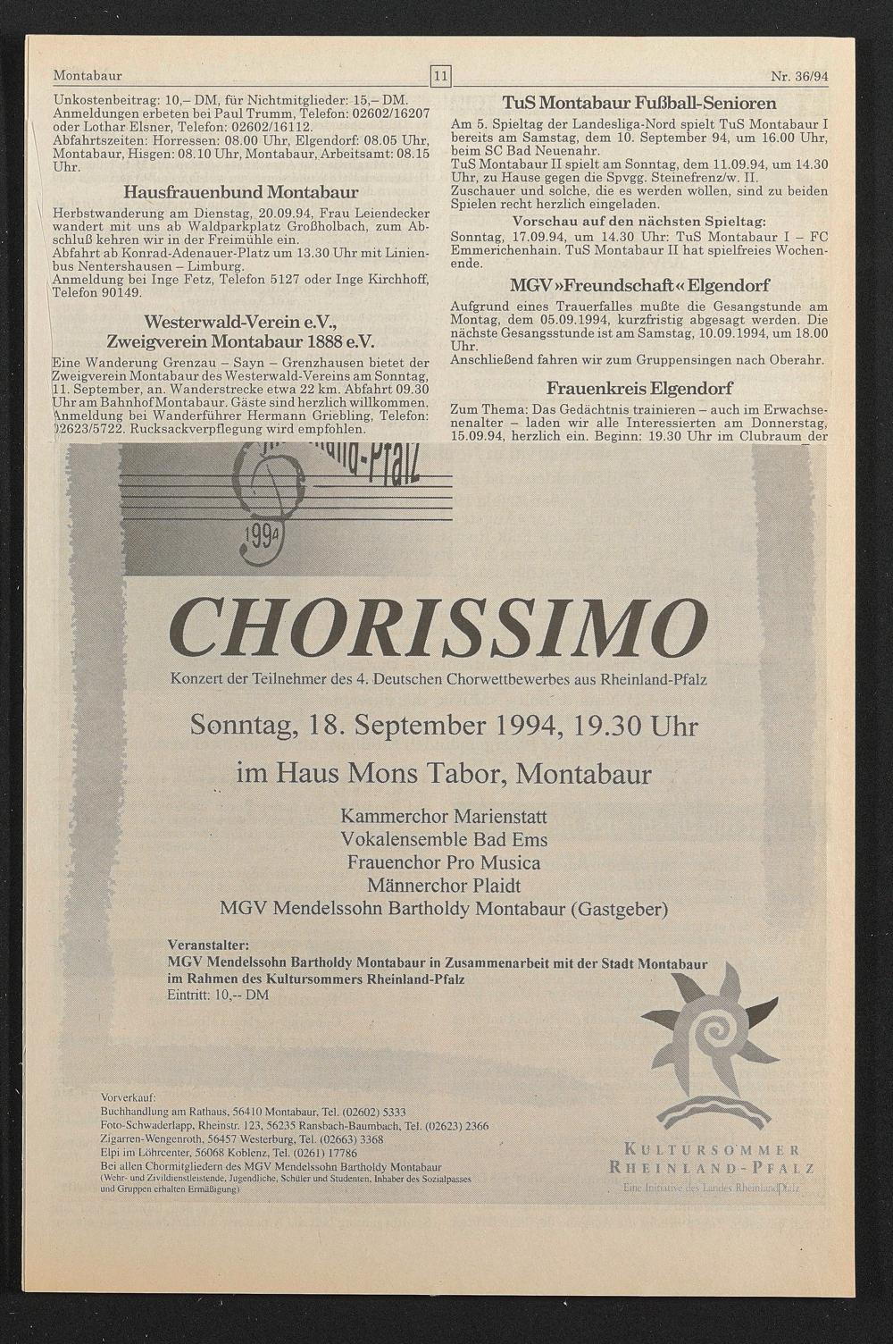 Sonntag, 17.09.94, um 14.30 Uhr: TuS Montabaur I - FC Emmerichenhain. TuS Montabaur II hat spielfreies Wochenende.