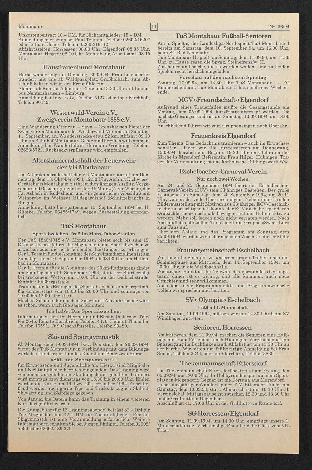 Ab Montag, dem 19.09.1994, bzw. Dienstag, dem 20.09.1994, bietet der TuS Montabaur in Verbindung mit dem Bildungswerk des Landessportbundes Rheinland-Pfalz zwei Kurse »Ski- und Sportgymnastik«