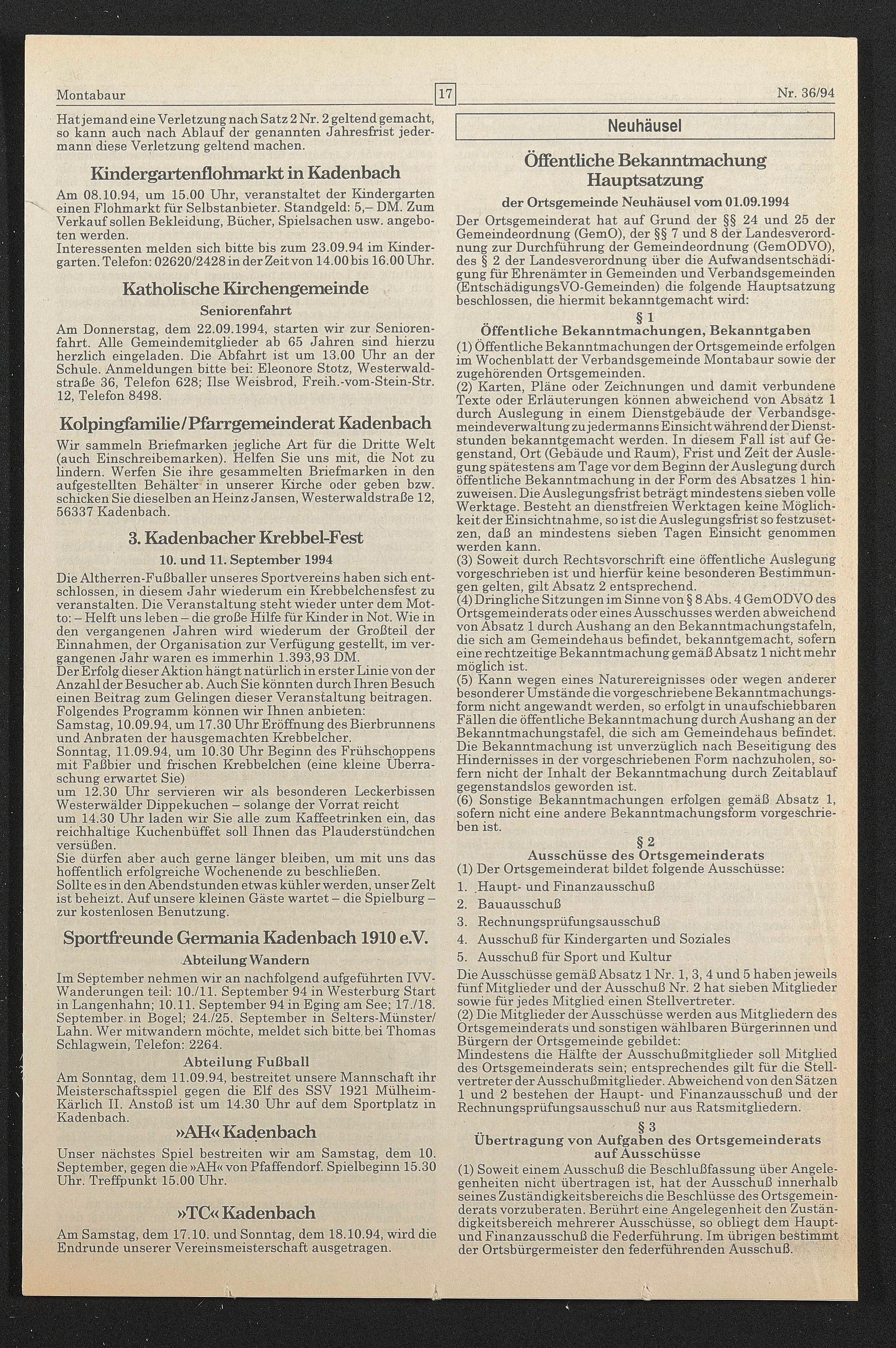 der Ortsgemeinde Neuhäusel vom 01.09.1994