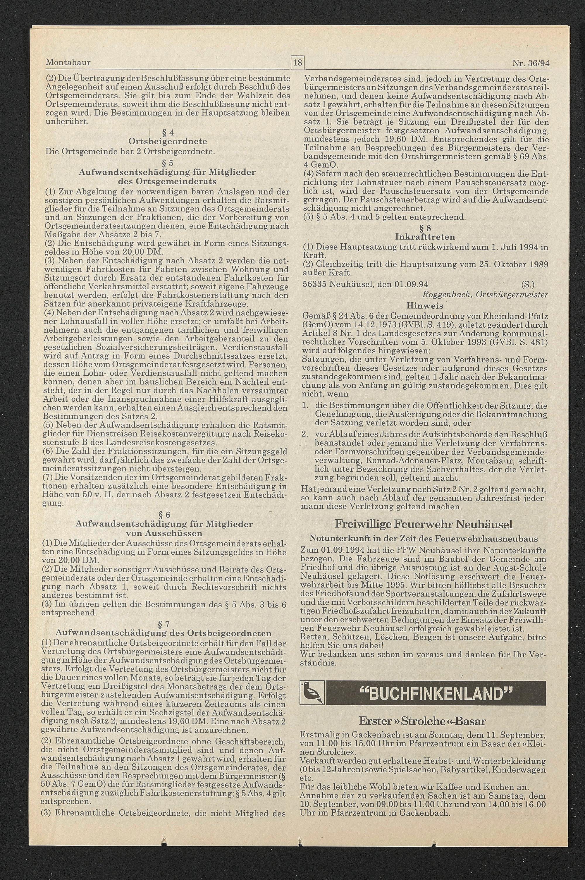 Verbandsgemeinderates sind, jedoch in Vertretung des Ortsbürgermeisters an Sitzungen des Verbandsgemeinderates teilnehmen, und denen keine Aufwandsentschädigung nach Absatz 1 gewährt, erhalten für die Teilnahme an diesen Sitzungen von der Ortsgemeinde eine Aufwandsentschädigung nach Absatz 1. Sie beträgt je Sitzung ein Dreißigstel der für den Ortsbürgermeister festgesetzten Aufwandsentschädigung, mindestens jedoch 19,60 DM. Entsprechendes gilt für die Teilnahme an Besprechungen des Bürgermeisters der Verbandsgemeinde mit den Ortsbürgermeistern gemäß § 69 Abs. 4 GemO.