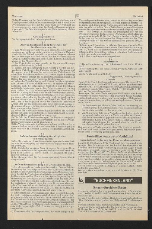 Gemäß § 24 Abs. 6 der Gemeindeordnung von Rheinland-Pfalz (GemO) vom 14.12.1973 (GVB1. S. 419), zuletzt geändert durch Artikel 8 Nr. 1 des Landesgesetzes zur Änderung kommunalrechtlicher Vorschriften vom 5. Oktober 1993 (GVB1. S. 481) wird auf folgendes hingewiesen: