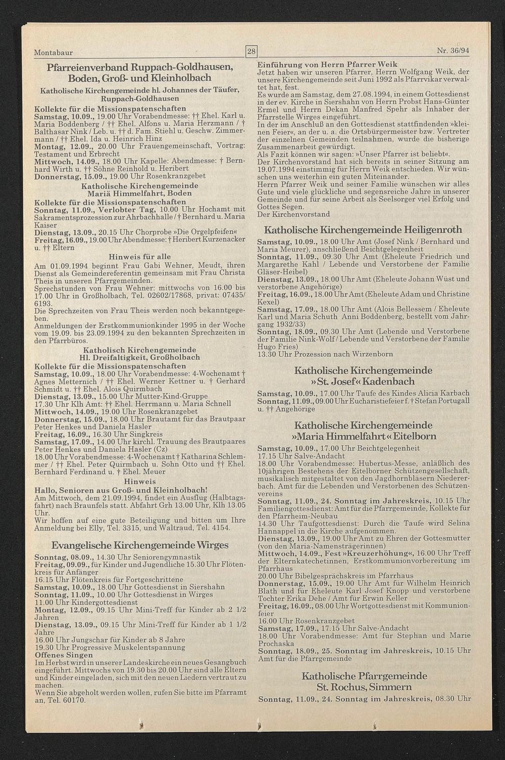 Es wurde am Samstag, dem 27.08.1994, in einem Gottesdienst in der ev. Kirche in Siershahn von Herrn Probst Hans-Günter Ermel und Herrn Dekan Manfred Spehr als Inhaber der Pfarrstelle Wirges eingeführt.