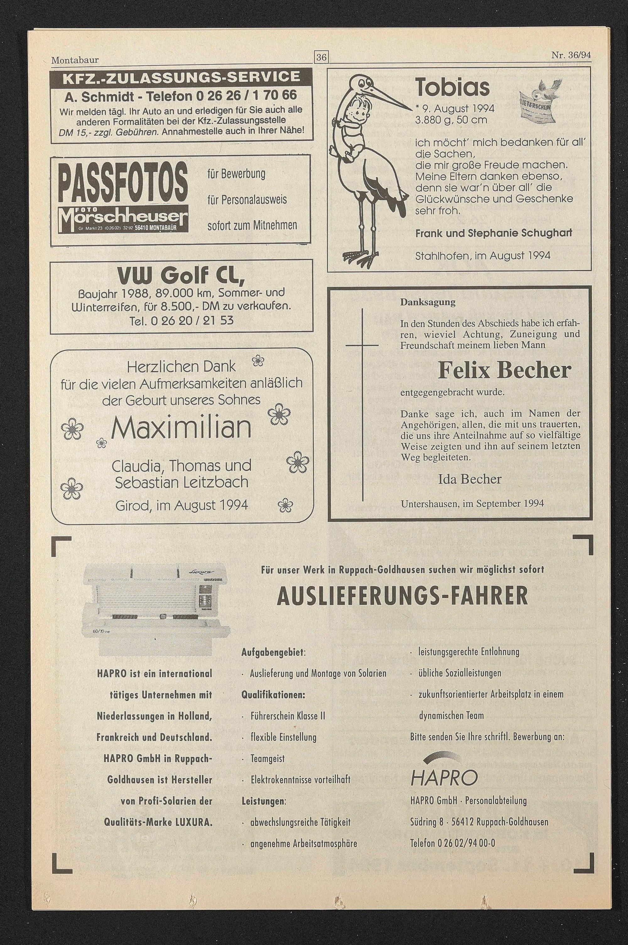 Baujahr 1988, 89.000 km, Sommer- und UUinterreifen, für 8.500,- DM zu verkaufen. Tel. 0 26 20 / 21 53