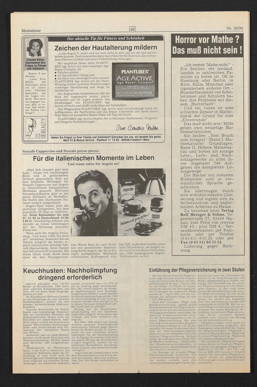 Wenn auch Sie Angelos Einladung „Und wann rufen Sie mich an?“ annehmen, brauchen Sie am Telefon lediglich die beiden typisch italienischen löslichen Nescafe-Spezialitäten, Ihren Namen und Ihre Anschrift zu nennen. Mit etwas Glück winkt Ihnen dann einer der drei Hauptgewinne: