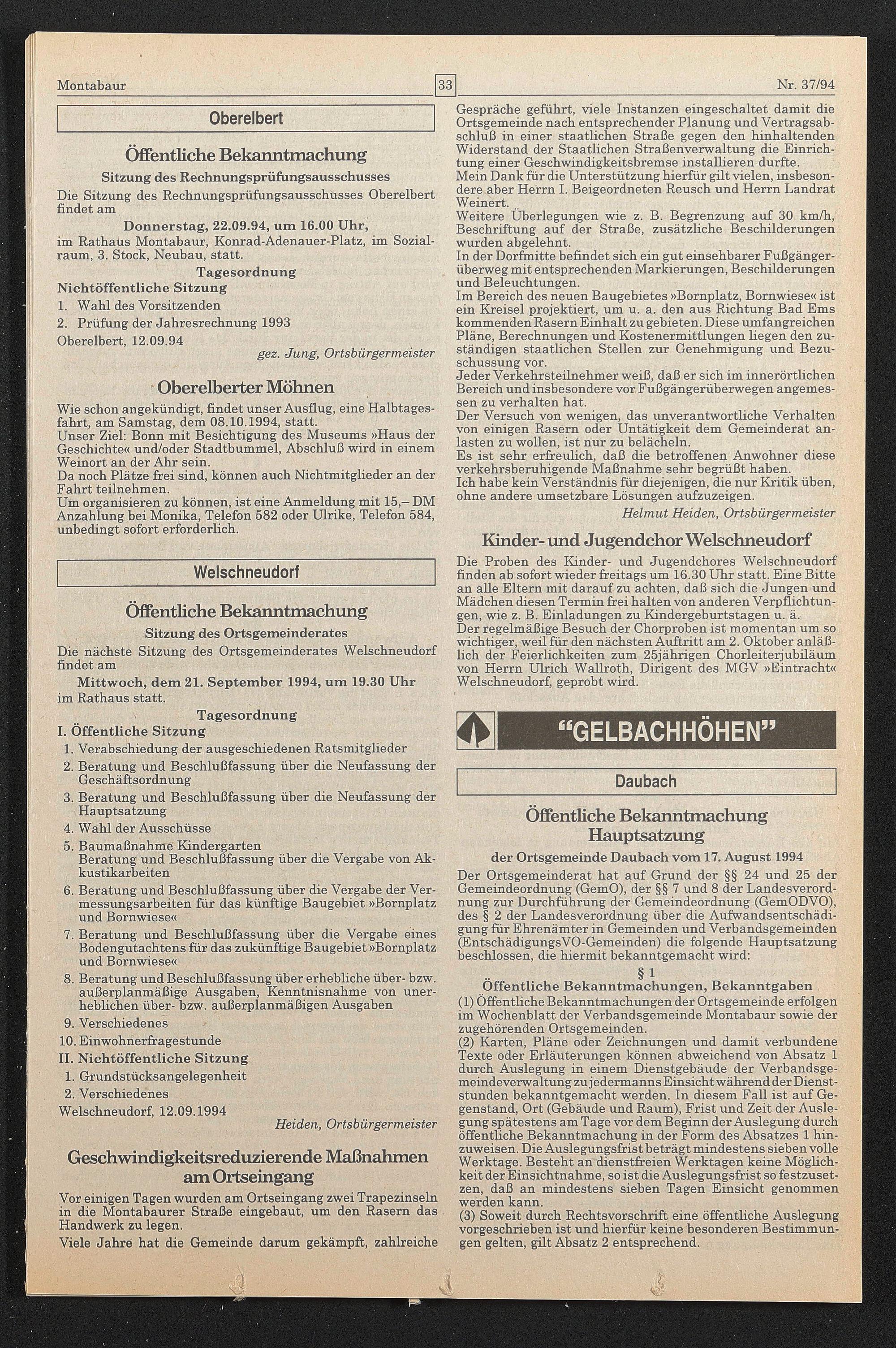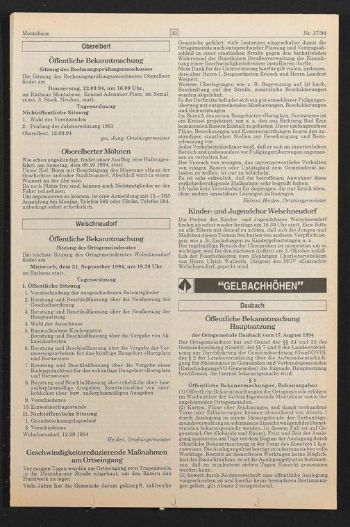 Donnerstag, 22.09.94, um 16.00 Uhr, im Rathaus Montabaur, Konrad-Adenauer-Platz, im Sozialraum, 3. Stock, Neubau, statt.