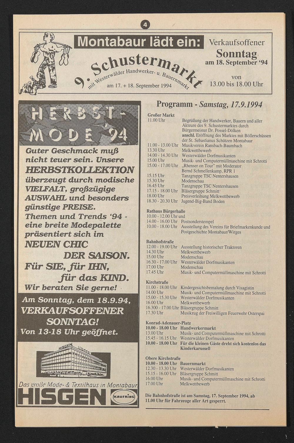Am Sonntag, dem 18.9.94, VERKAUFSOFTENER SONNTAG!
