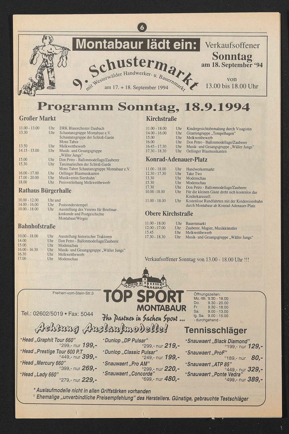 Programm Sonntag, 18.9.1994