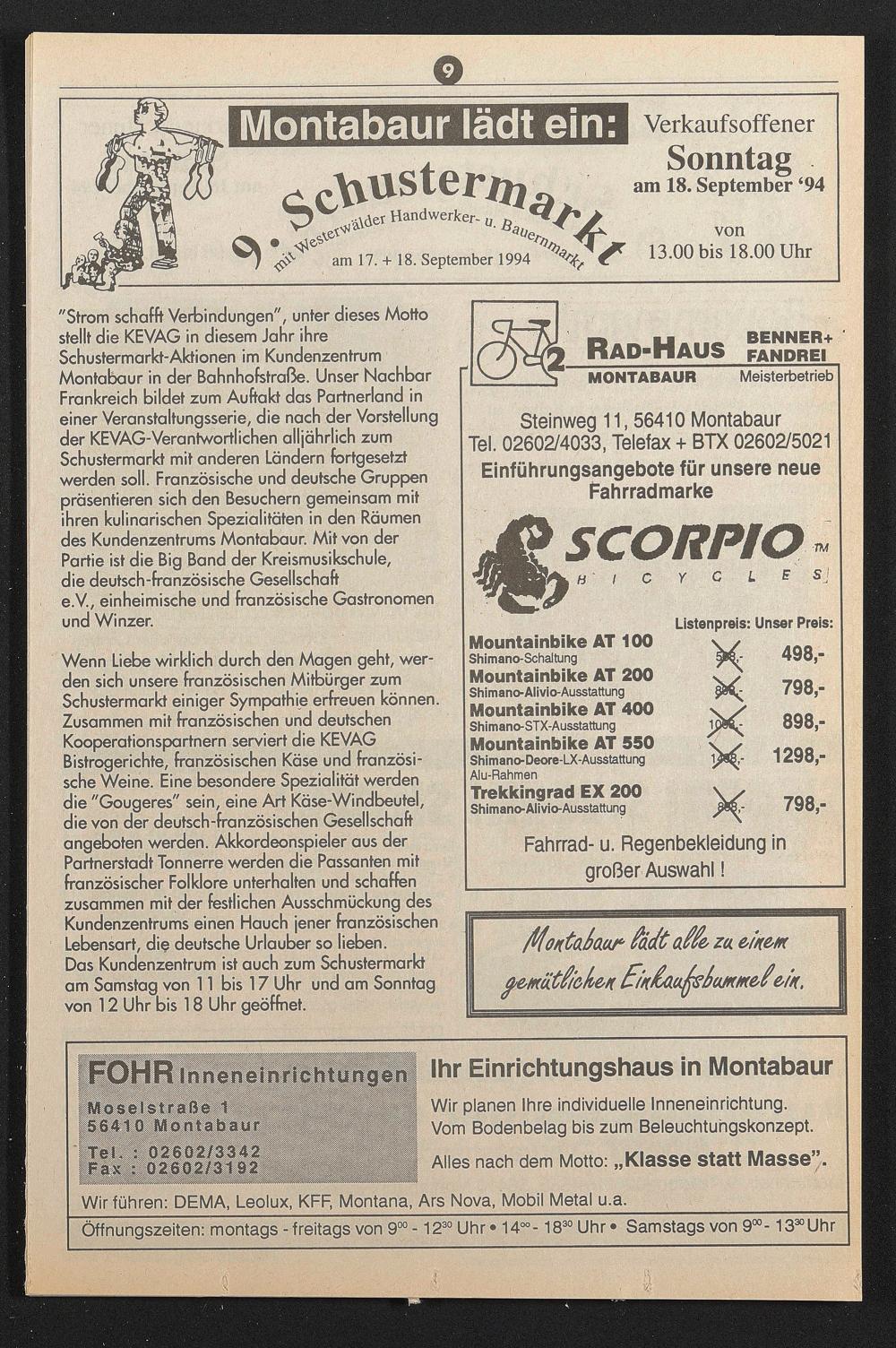 Steinweg 11,56410 Montabaur Tel. 02602/4033, Telefax + BTX 02602/5021 Einführungsangebote für unsere neue Fahrradmarke