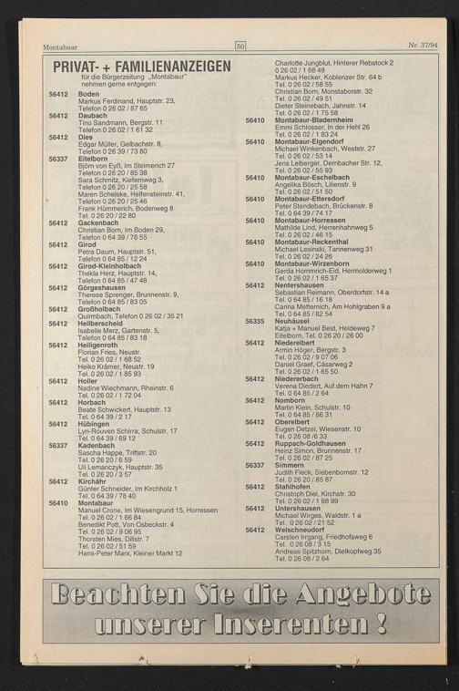 für die Bürgerzeitung „Montabaur” nehmen gerne entgegen: