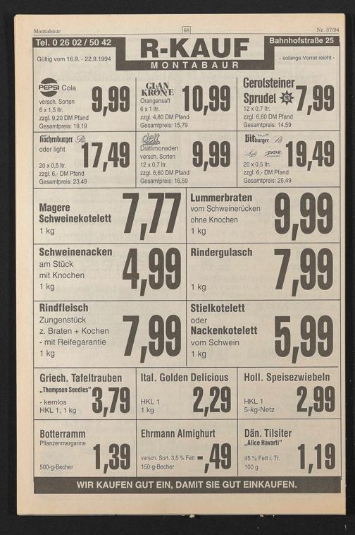 20 X 0,5 Itr. zzgl. 6,- DM Pfand Gesamtpreis: 25,49