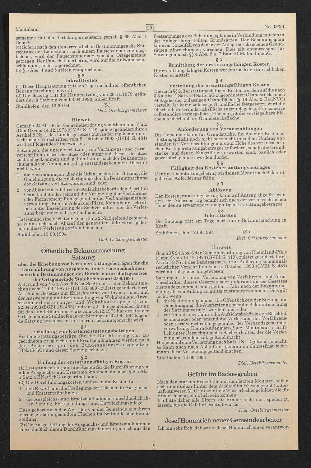 Gemäß § 24 Abs. 6 der Gemeindeordnung von Rheinland-Pfalz (GemO) vom 14.12.1973 (GVB1. S. 419), zuletzt geändert durch Artikel 8 Nr. 1 des Landesgesetzes zur Änderung kommunalrechtlicher Vorschriften vom 5. Oktober 1993 (GVB1. S. 481) wird auf folgendes hingewiesen: