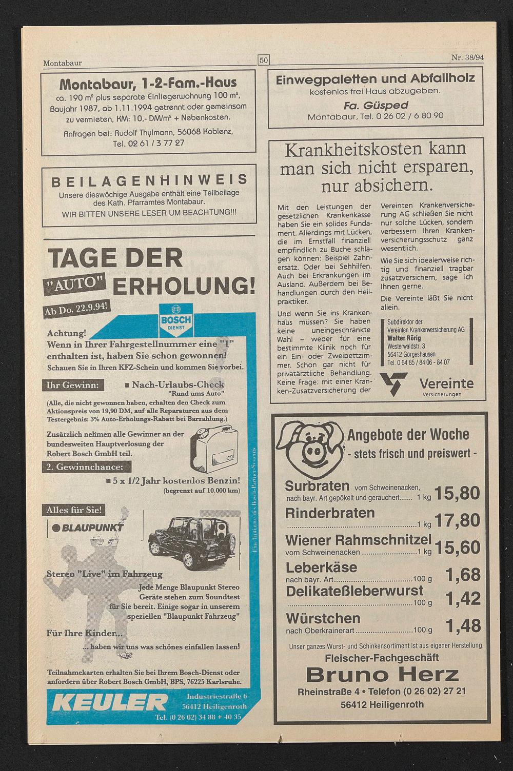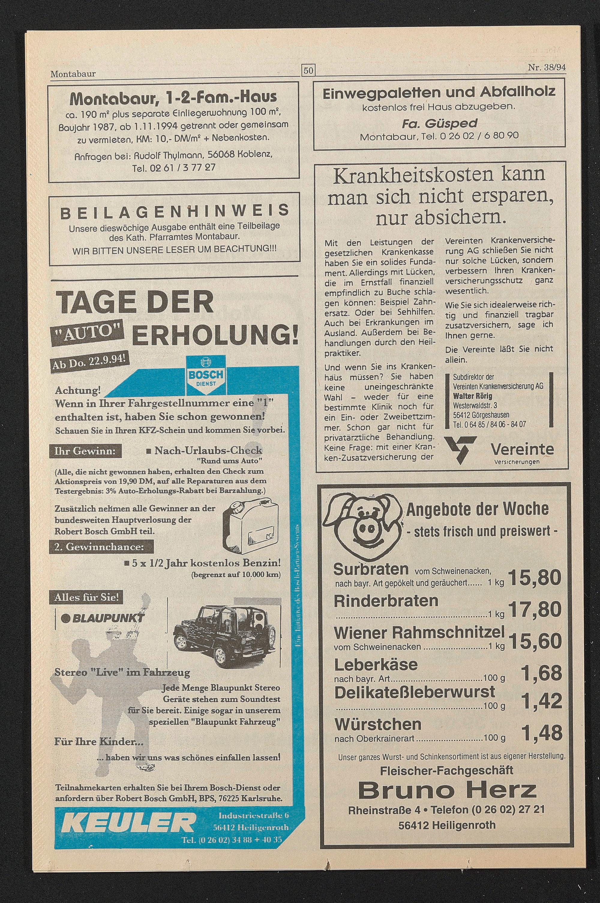Unsere dieswöchige Ausgabe enthält eine Teilbeilage des Kath. Pfarramtes Montabaur.