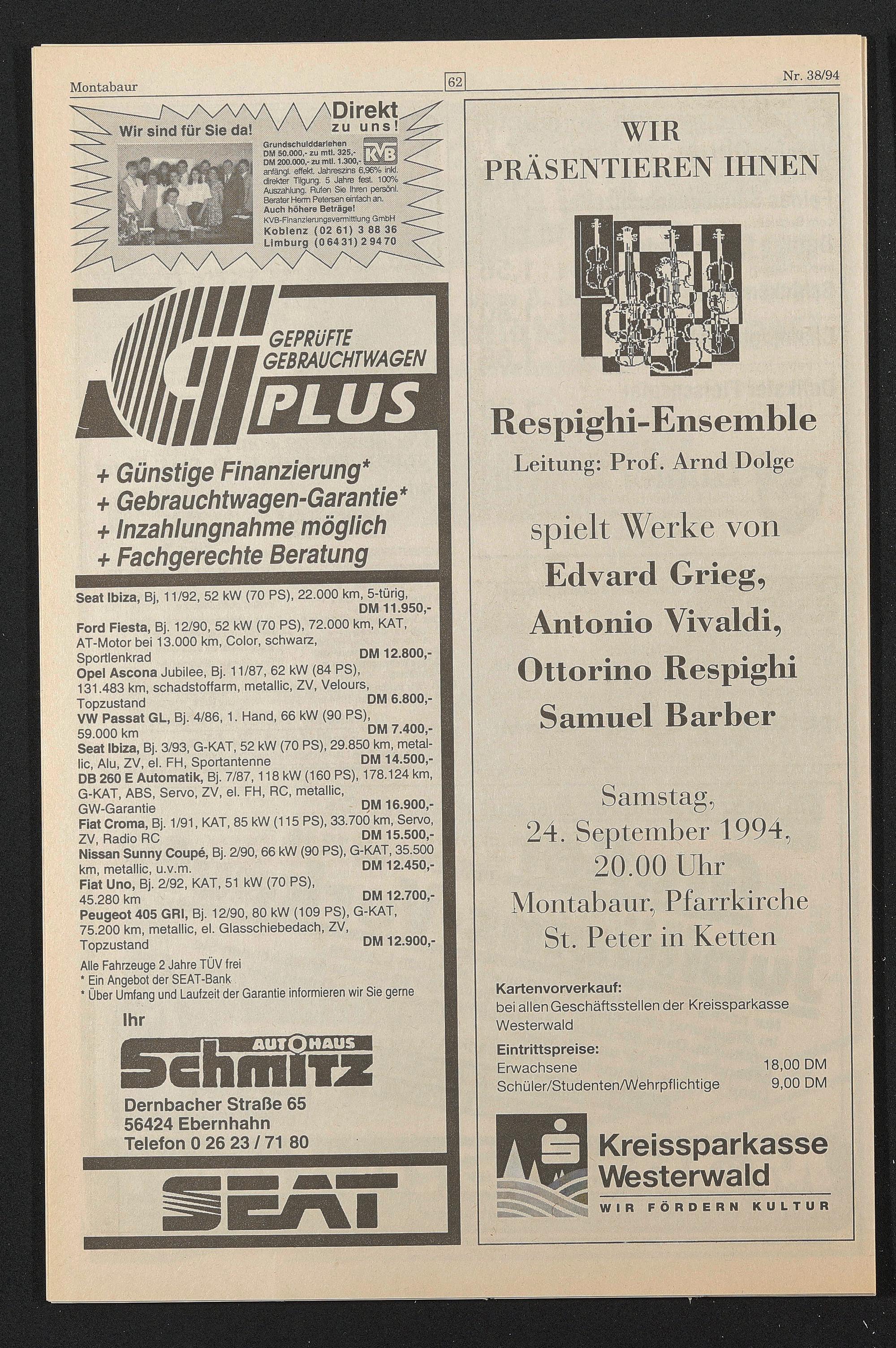 Seat Ibiza, Bj. 3/93, G-KAT, 52 kW (70 PS), 29.850 km, metallic, Alu, ZV, el. FH, Sportantenne DM 14.500,-