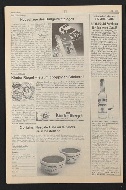 Nescafe Typ Cafe au lait - so schmeckt er aus den original den Abschnitt unten aus, und heißt die neue Kaffeespezialität Nescafe Cafe au lait-Bols, die schicken Sie ihn mit einem Ver- ä la franfaise. Ganz weich, ganz Sie jetzt zum Sonderpreis von rechnungsscheck oder dem mild, ganz cremig im Ge- 10,- DM (2 Bois pro Set) bestel- Kaufpreis in bar an folgende schmack. Und am allerbesten len können. Füllen Sie einfach Adresse: