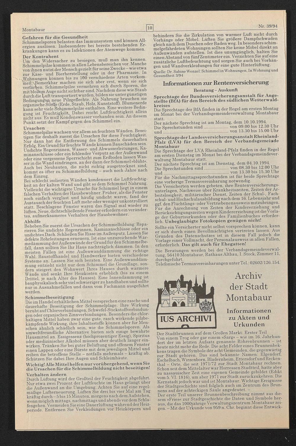 Der nächste Sprechtag ist am Montag, dem 10.10.1994.