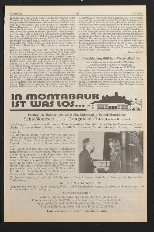Freitag, 14. Oktober 1994,20.00 Uhr, Rittersaal im Schloß Montabaur