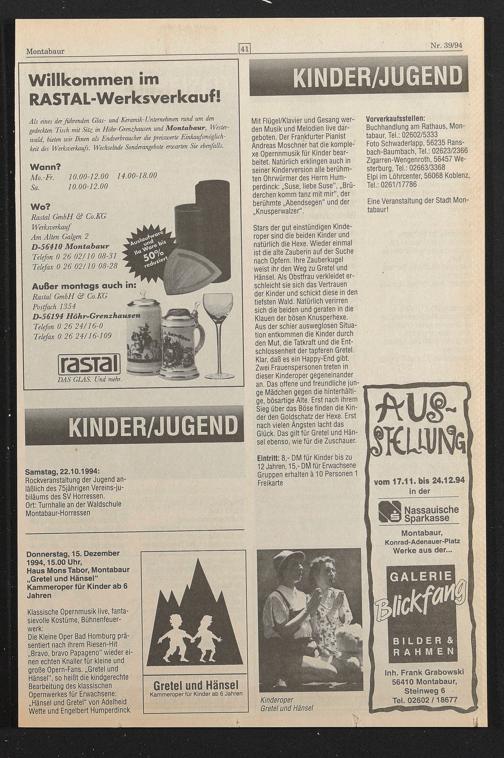 Buchhandlung am Rathaus, Montabaur, Tel.: 02602/5333 Foto Schwaderlapp, 56235 Ransbach-Baumbach, Tel.: 02623/2366 Zigarren-Wengenroth, 56457 Westerburg, Tel.: 02663/3368 Elpi im Löhrcenter, 56068 Koblenz, Tel.: 0261/17786