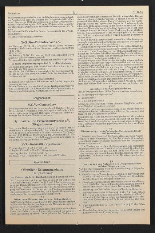 der Ortsgemeinde Großholbach vom 30. September 1994