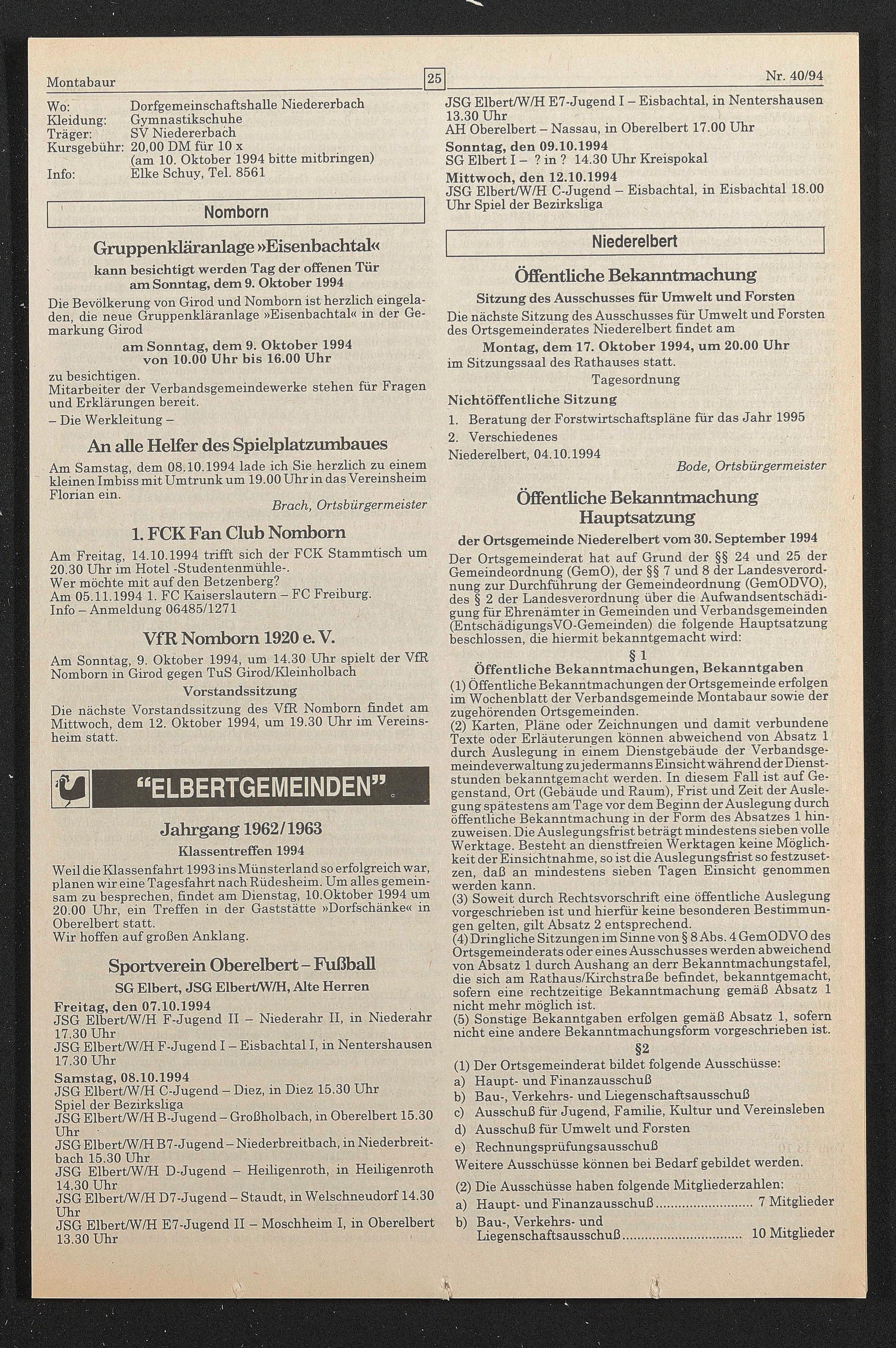 2. Verschiedenes Niederelbert, 04.10.1994