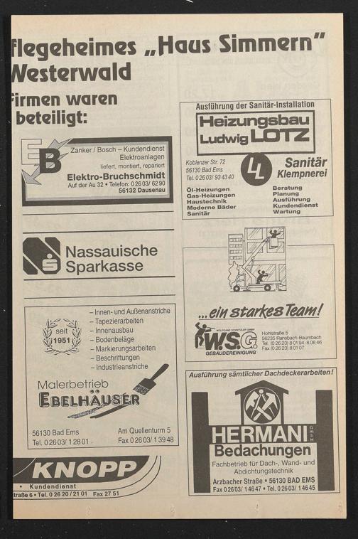 Arzbacher Straße • 56130 BAD EMS Fax 02603/14647 • Tel. 02603/14645