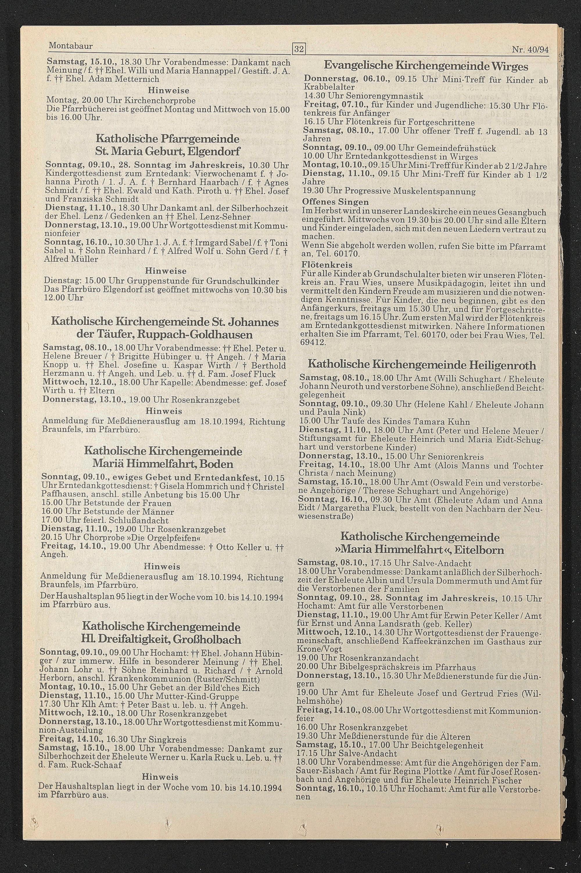 Der Haushaltsplan liegt in der Woche vom 10. bis 14.10.1994 im Pfarrbüro aus.