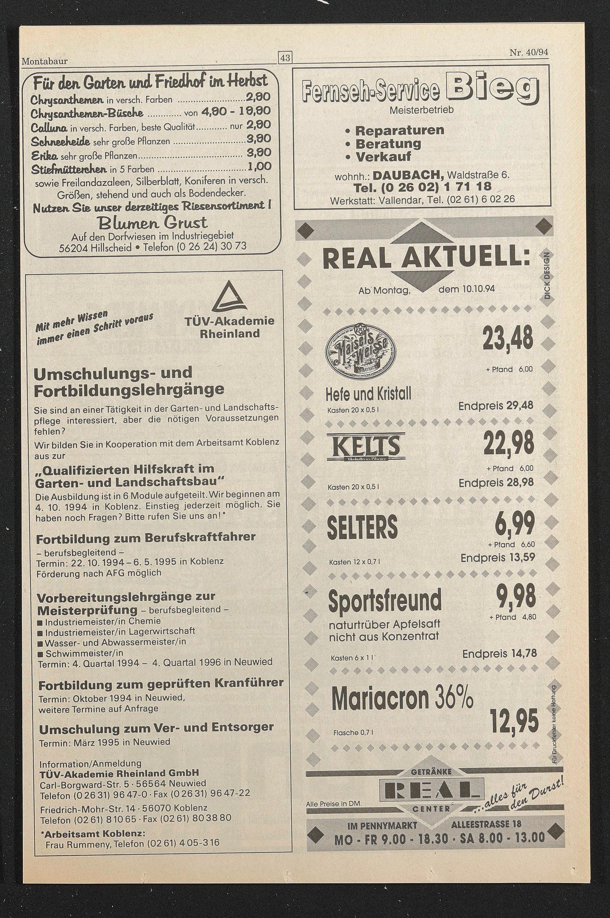 Termin: 22.10.1994-6. 5.1995 in Koblenz Förderung nach AFG möglich