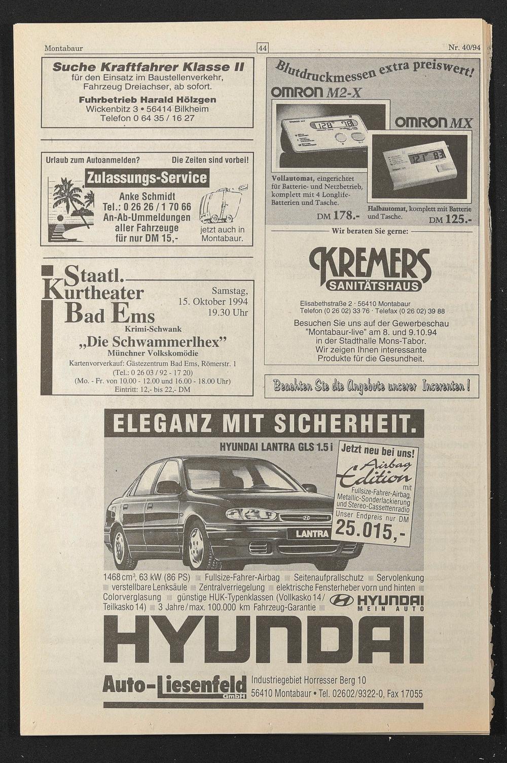 Besuchen Sie uns auf der Gewerbeschau ”Montabaur-live” am 8. und 9.10.94 in der Stadthalle Mons-Tabor.