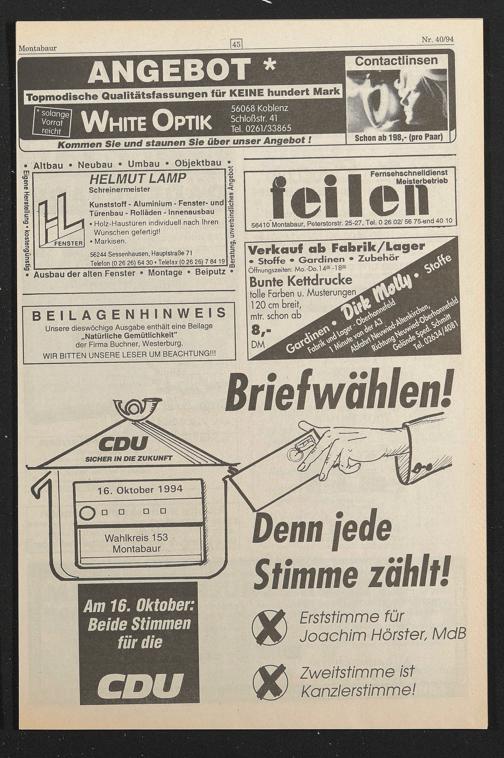 Unsere dieswöchige Ausgabe enthält eine Beilage „Natürliche Gemütlichkeit” der Firma Büchner, Westerburg.