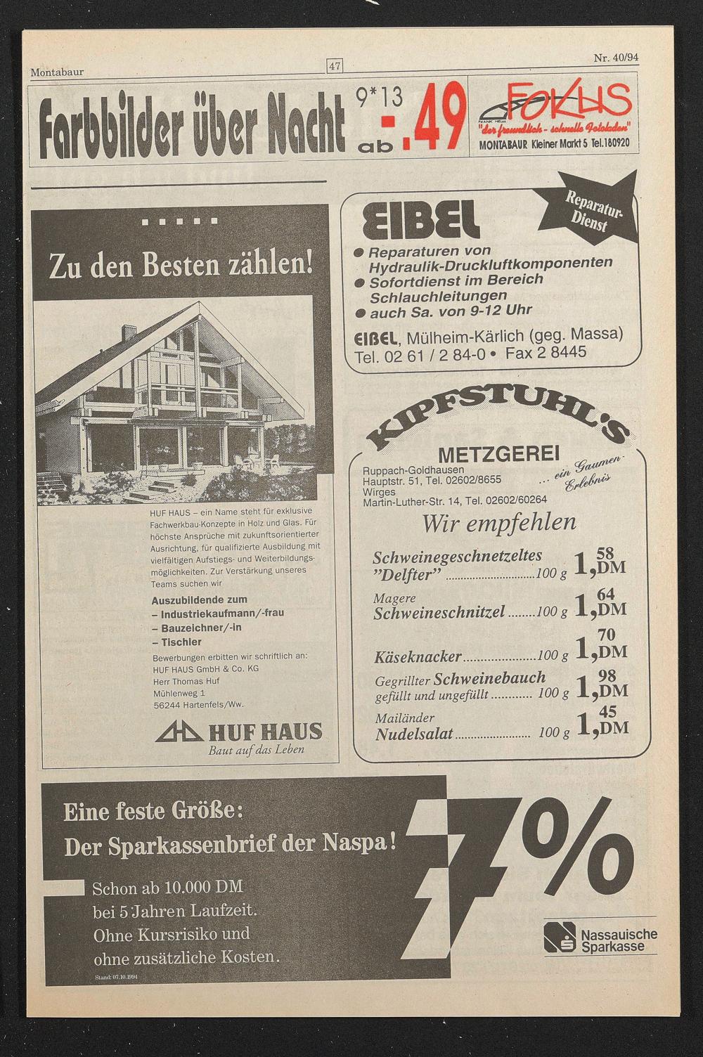 M0N1ABAUR Kleiner Markt 5 Tel.160920