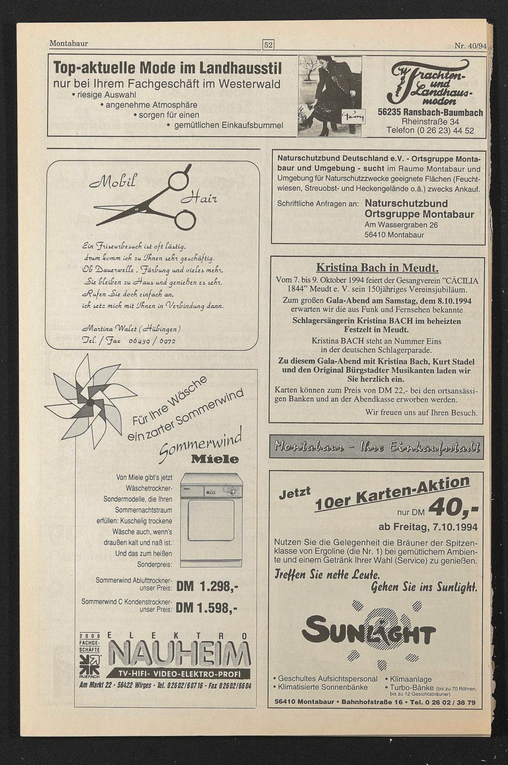 Vom 7. bis 9. Oktober 1994 feiert der Gesangverein ”C.ÄCTT TA 1844” Meudt e. V. sein 150jähriges Vereinsjubiläum.