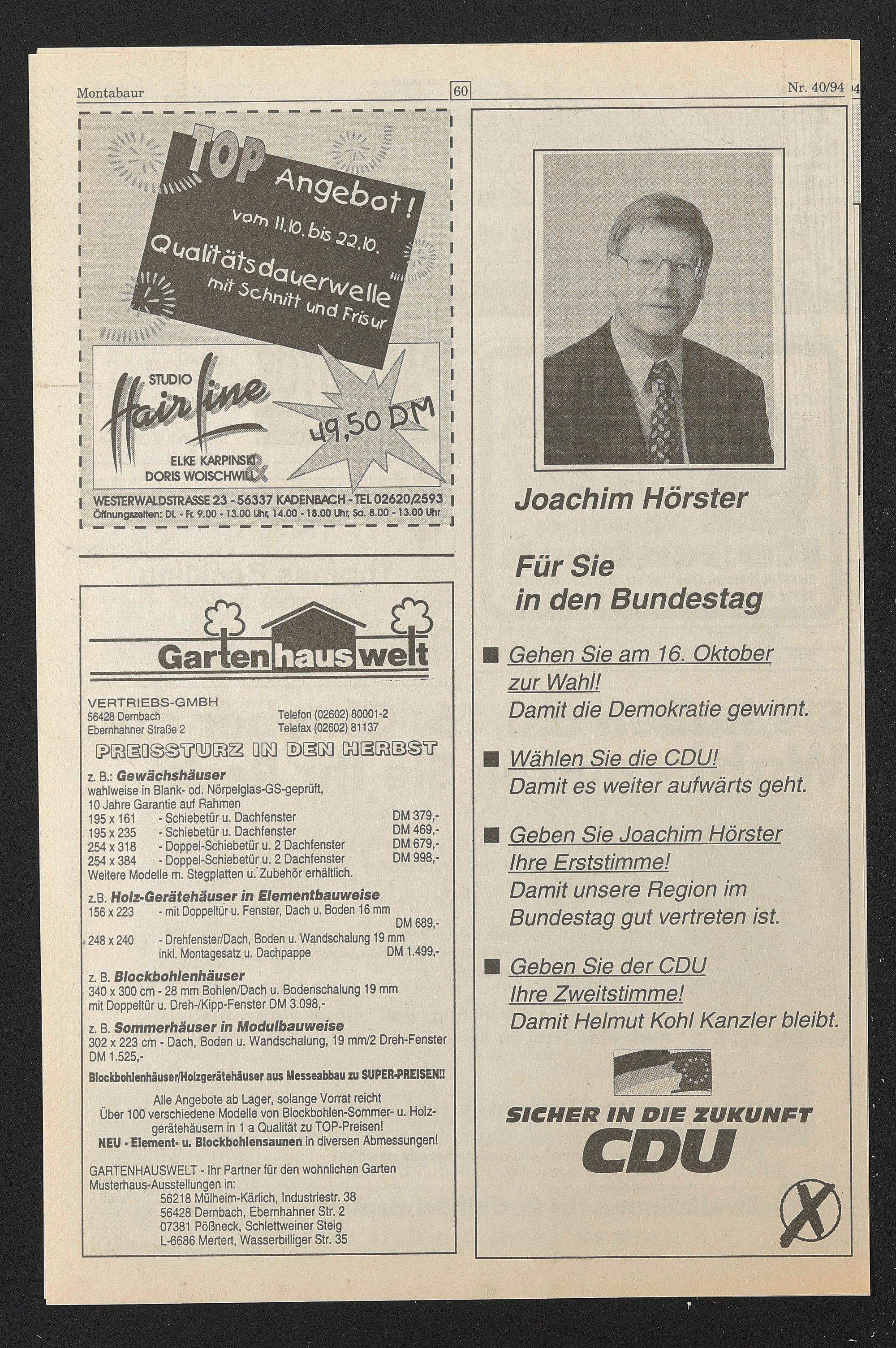 WESTERWALDSTRASSE 23 - 56337 KADENBACH -TEL02620)2593 Öffnungszeiten: DL • Ft 9.00 • 13.00 Uht 14.00 * 18.00 Uht Sa. 8.00 - 13.00 Uhr
