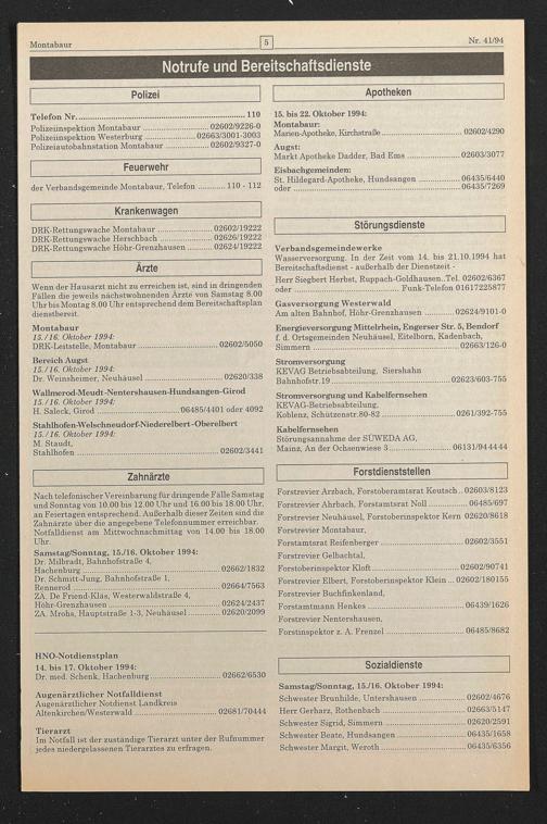 der Verbandsgemeinde Montabaur, Telefon.110 - 112