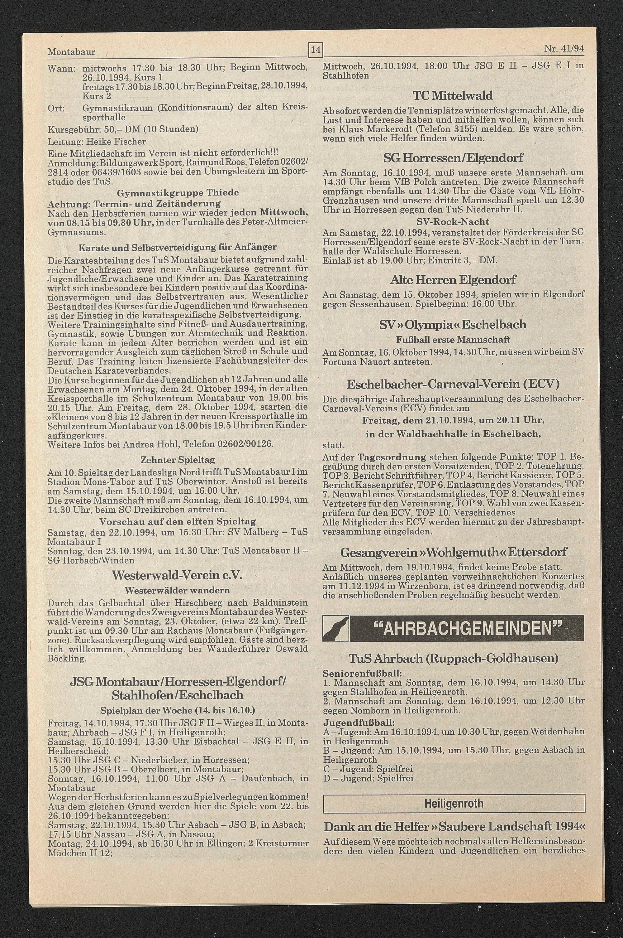 Freitag, 14.10.1994,17.30 Uhr JSG FII— Wirges II, in Montabaur; Ahrbach - JSG F I, in Heiligenroth;