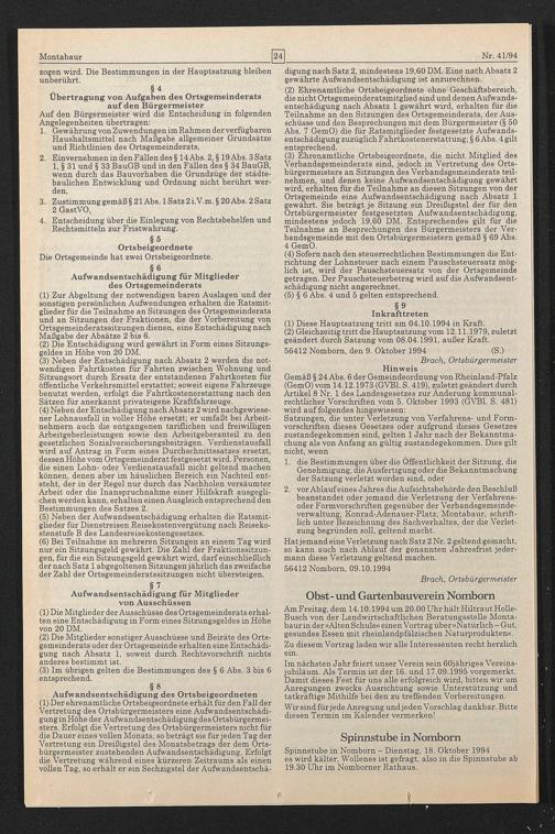 56412 Nomborn, den 9. Oktober 1994 (S.)