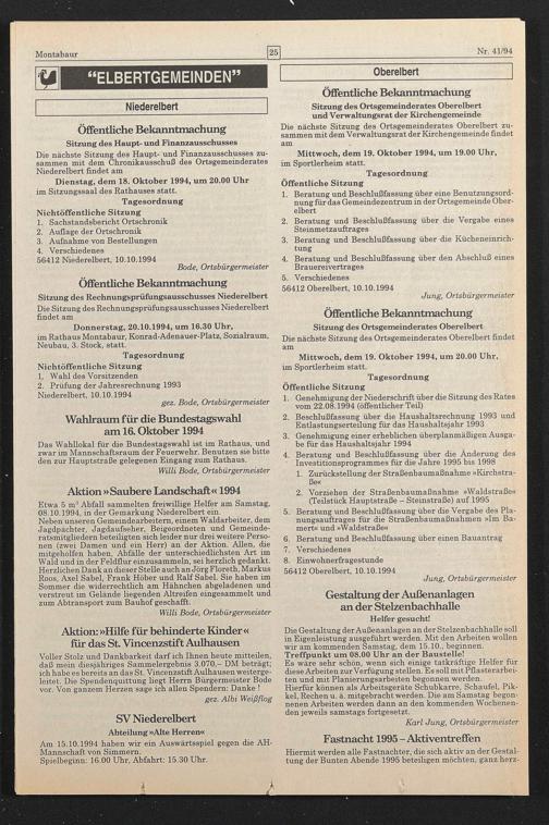 2. Prüfung der Jahresrechnung 1993 Niederelbert, 10.10.1994