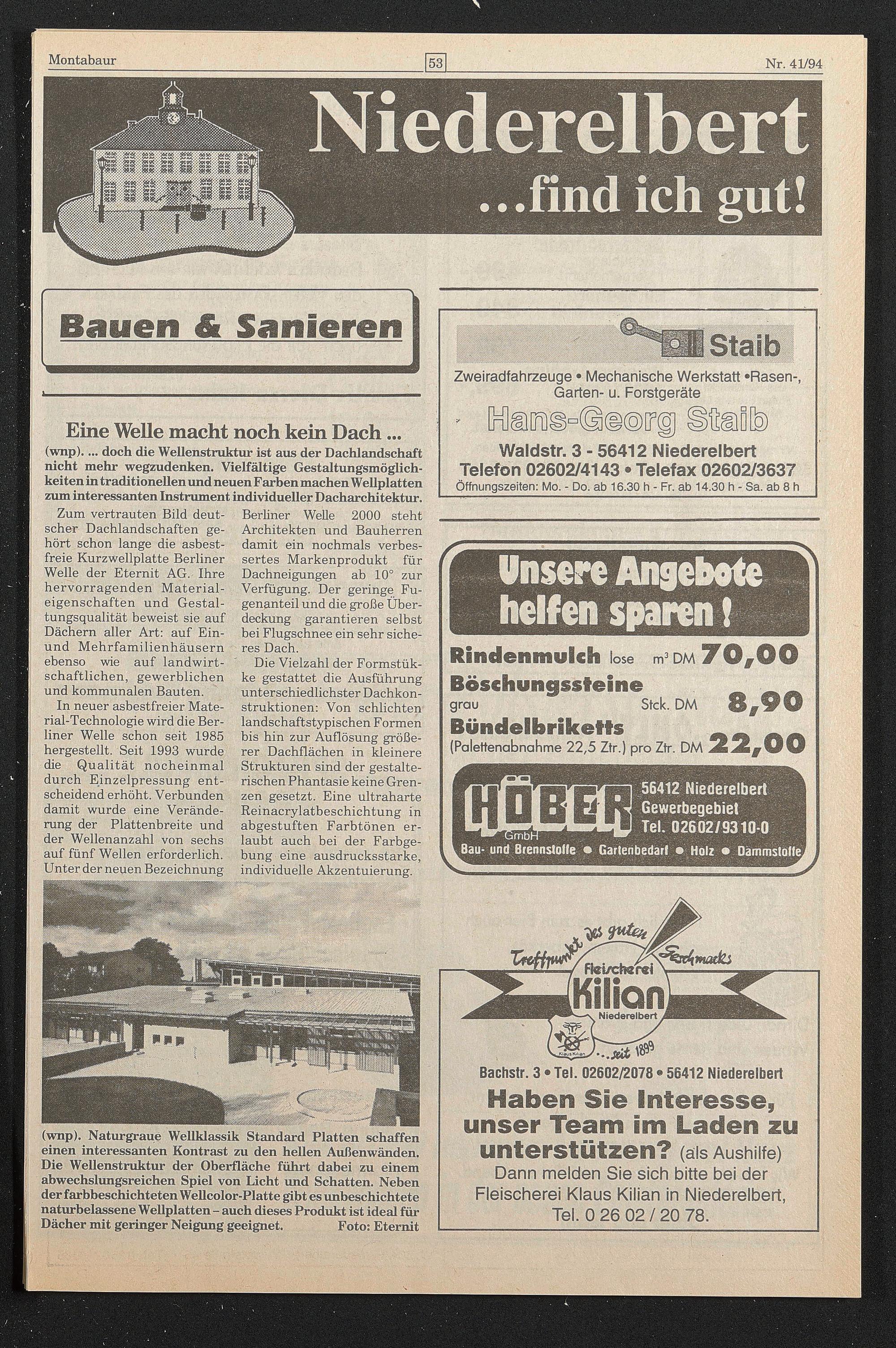 Waldstr. 3 - 56412 Niederelbert Telefdn 02602/4143 • Telefax 02602/3637