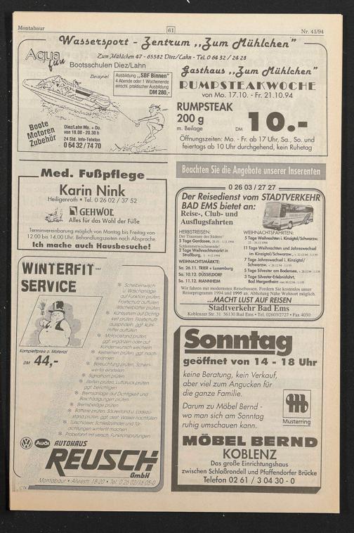 Koblenzer Str. 31 56130 Bad Ems • Tel. 02603/2727 • Fax 4030