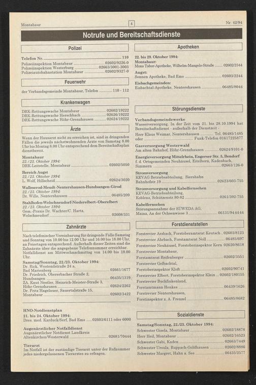 der Verbandsgemeinde Montabaur, Telefon.110 - 112
