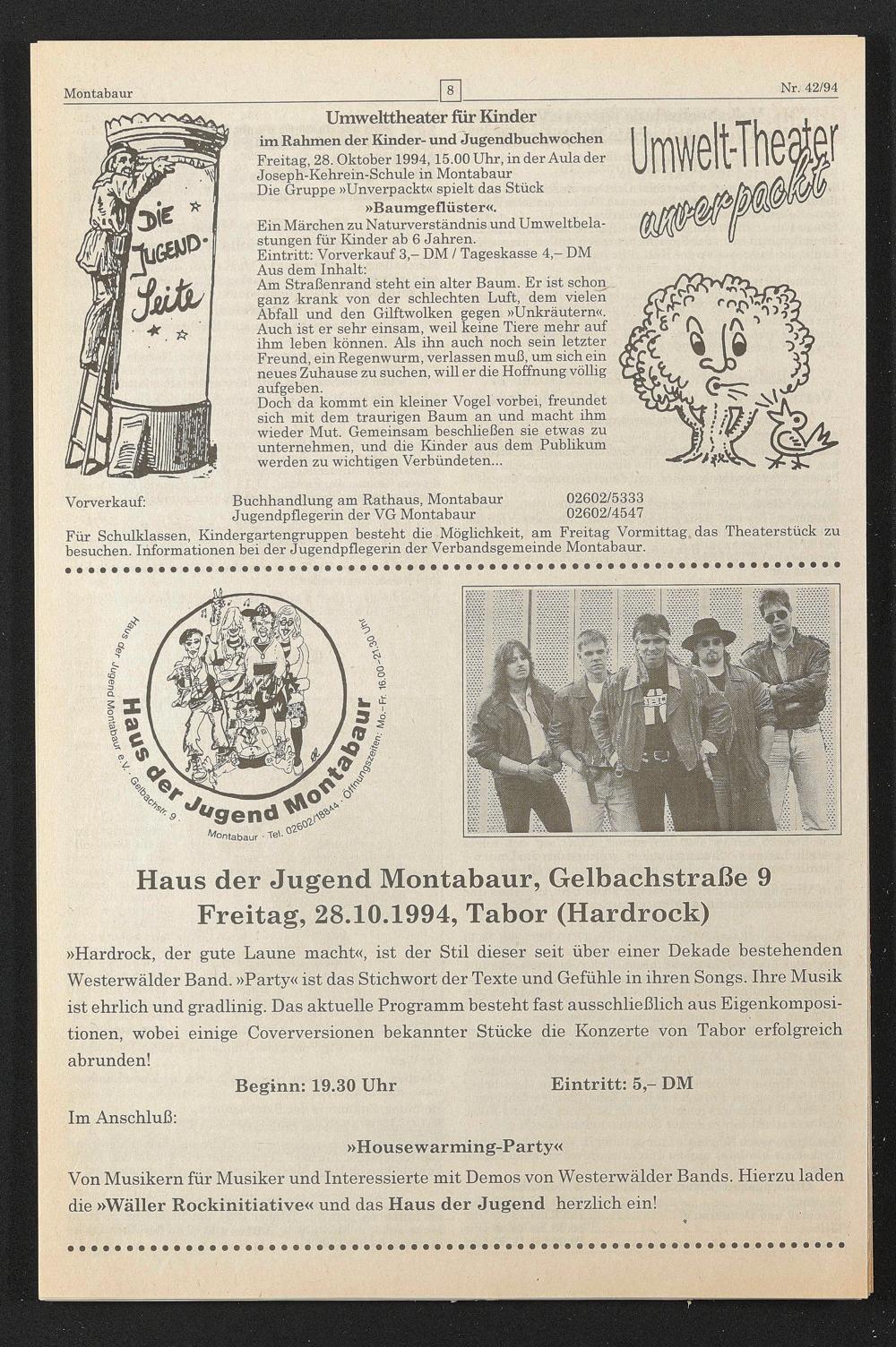 Haus der Jugend Montabaur, Gelbachstraße 9 Freitag, 28.10.1994, Tabor (Hardrock)
