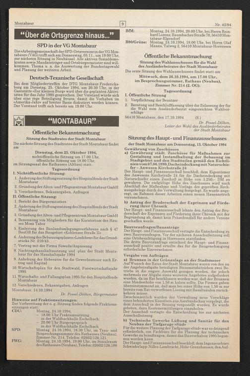 12. Verschiedenes, Bekanntgaben, Anfragen Montabaur, 14.10.1994