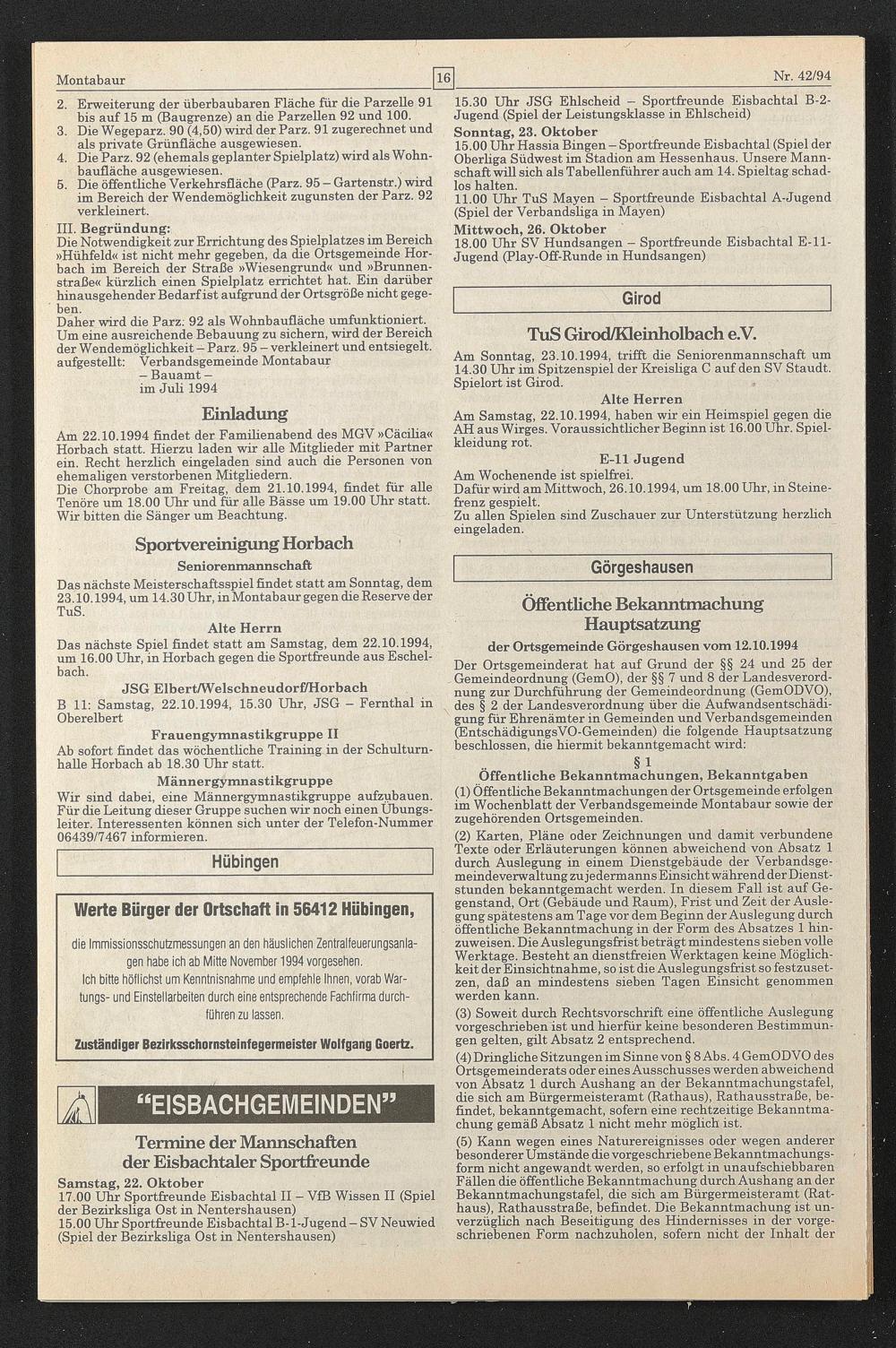 der Ortsgemeinde Görgeshausen vom 12.10.1994