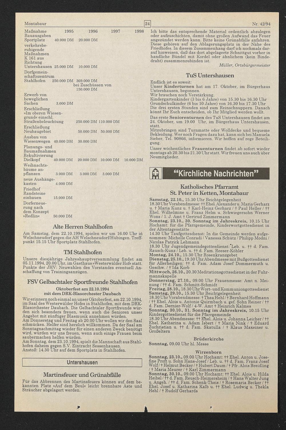 Sportplatz 40.000 DM 20.000 DM verkehrsberuhigende Maßnahmen K 161 aus Richtung